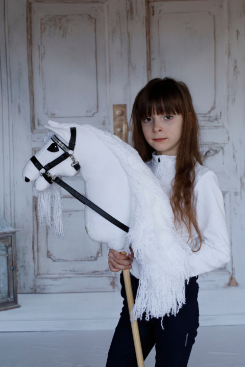 Hobby horse BIAŁY z długą grzywą A3 (konik na patyku)
